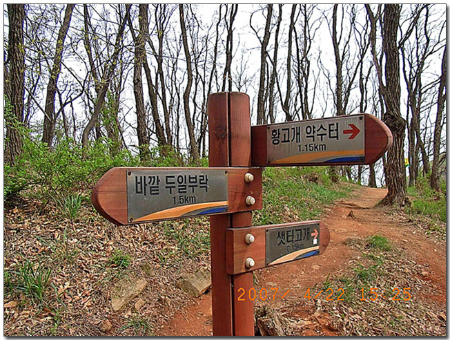´É¼±¹æÇâÀ¸·Î Á÷ÁøÇÏ¿© ÁøÇàÇÑ´Ù. ÁÂÃøÀ¸·Î Ȳ°í°³ ¾à¼öÅÍ·Î ¿Ã¶ú´Ù°¡ ³»·Á°¡´Â ±æµµ ÀÖ´Ù°í Çϴµ¥ °¡º¸Áø ¾Ê¾Ò´Ù. ÀÌÁ¨ °ÅÀÇ ½Ã¿øÇÑ
