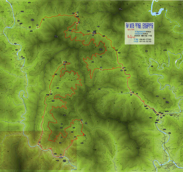 이번 라이딩은 이틀간에 걸쳐서 진행된다. 중간에 비박을 하면서 첫째날은 자개골(62Km), 둘째날은 단임골(50Km)을 돌아보았다.
