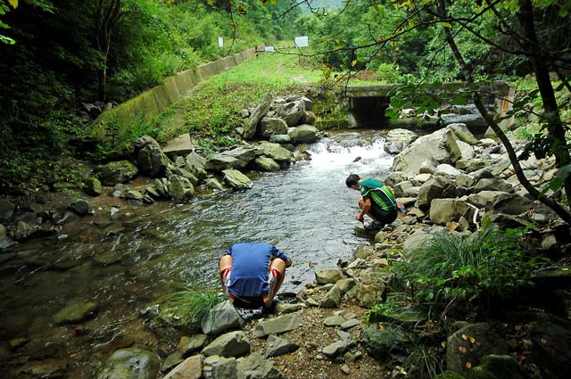 대문길은 콘크르트 포장이 되어 있는 빡센 업힐길이다. 어떤길일까 궁금하여 박사님이 걸어 오르지만 금새 내려온다. 오래전부터 박사님의 인텐스 스파이더를 업힐에서 한번 타보고 싶었던지라 잔차를 빌려타고 왼쪽 콘크리트를 오른다. 1:2로 놓고 오르는 급한 업힐이 편안하기 까지 하다. 내 잔차라면 다리에 어느정도 부하도 느껴지고 바빙을 피해갈 수 없었을텐데 박사님의 스파이더는 이끼끼고 굴곡진 콘크리트 업힐이 너무 수월하다. 음.. 장비에 대한 압박이 점점더해온다. 이박사님 잔차의 풍족함을 즐기면서 한참을 오르고 있자니 오른쪽 계곡에 이끼가 지천이다. 굉장히 서늘한데다 습한 업힐길이다. 콘크리트 곳곳은 이끼에다 물이 흐르고 있다. 어제 김랑호가 단임골에는 이끼계곡이 있다고 했다. 그렇다.. 여기가 바로 이끼계곡이다. 시간상 더 오를 수는 없었지만 많은 사진작가들이 즐겨 찾아오는 이끼계곡을 내가 오르고 있었다. 뭔가 보물을 찾아낸 기분으로 다시 내려와 박사님께 잔차의 성능과 비밀 이끼계곡에 대해 찬사를 하려 했다. 하지만 단월낭자는 컨디션 조절을 위해 이미 오늘쪽 업힐길로 가버리고 없었다.ㅠㅠ