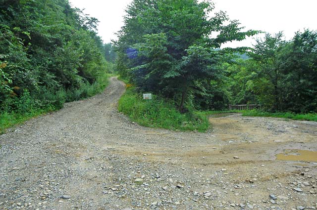 많이 온듯 싶은데도 업힐 초입부근에 겨우 도달한다. 삼거리 였는데 왼쪽길은 파란대문이 달려 있다.