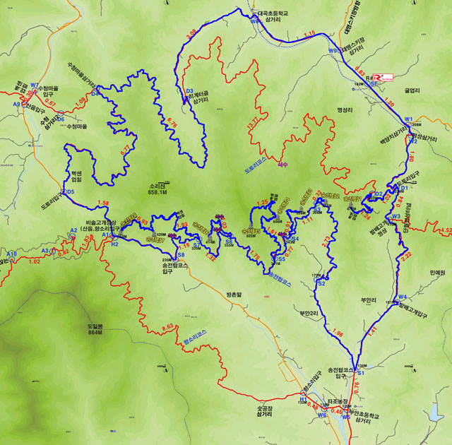– R# MTB SCHOOL 3기 2주차 송전탑, 도토리 순환코스맵