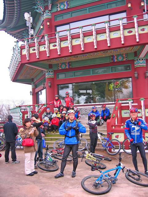 팔각정에서 잠깐 모였다가 다시 청계광장으로 잔차를 타고 내려간다. 원래 하산길에는 선도차의 인솔을 받게 되어 있었는데 암껏도 없다. 알아서 내려가야 한다..ㅠㅠ