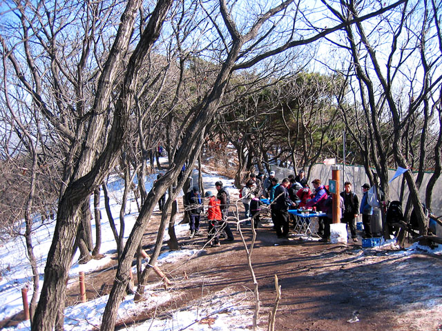 석기봉과 이수봉으로 갈라지는 삼거리에는 많은 인파가 모여 있다. 예전에 등산할때 청계산을 오르는 도중 동동주로 갈증을 달래보는 곳이기도 했다. 아직도 여전히 동동주를 팔고 있었는데 아무래도 먹을 호기가 생기지 않는다. 앞으로 가야할 이수봉, 국사봉에 대한 정보가 없는지라 몸사려야 하기 때문이다.
