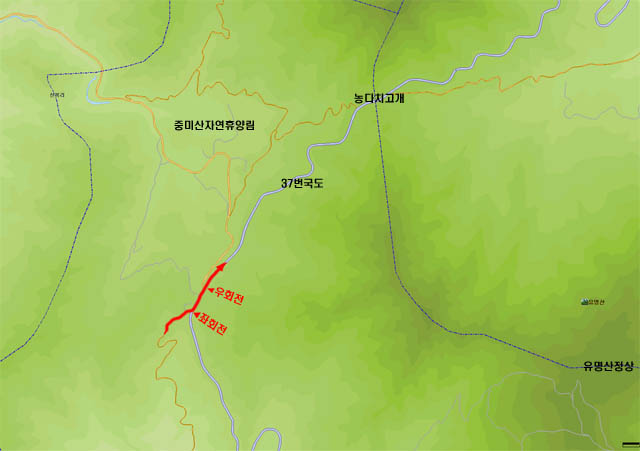 37번국도에서 좌회전 아스팔트로를 따라가다 삼거리에서 다시 우회전하면 된다. 아래 지도를 참조하시라.