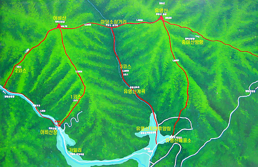 어비계곡 가는길은 첨은 아스팔트.. 이어 콘크리트 업힐지역이다. 중간에 어비산장 근방의 등산로 안내판이 눈에 들어온다.