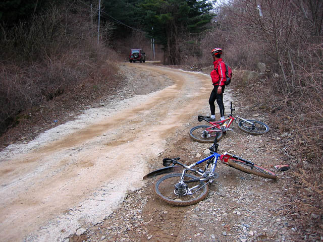 하지만 언제 그랬냐는 듯이 박사님의 업힐은 여전히 뜨겁다. 숫고개를 오르면서도 페달링은 거침이 없다. 하지만 숫고개에 거의 도달할 즈음에 펼쳐진 콘크리트 빨래판에서 결국 우리는 쉬었다. 업힐 한번에 체력을 모두 쏫아붓기에는 처음 가는 길이 너무 부담스럽다.