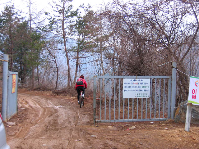 가는 도중 곳곳에 빗발이 눈에 띈다. 숫고개를 올라 잠시 딴힐에 나즈막한 업힐을 하고 나면 배너머고개 삼거리에 이른다. 삼거리에는 ATV체험하러 오신분들로 그득하다. 대부산 농장입구 문을 통과하여 활공장으로 향한다.