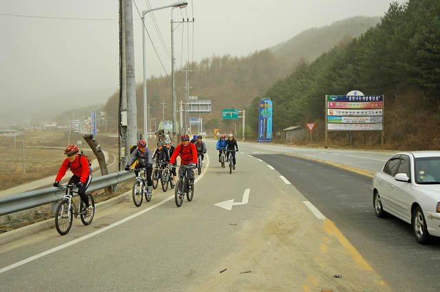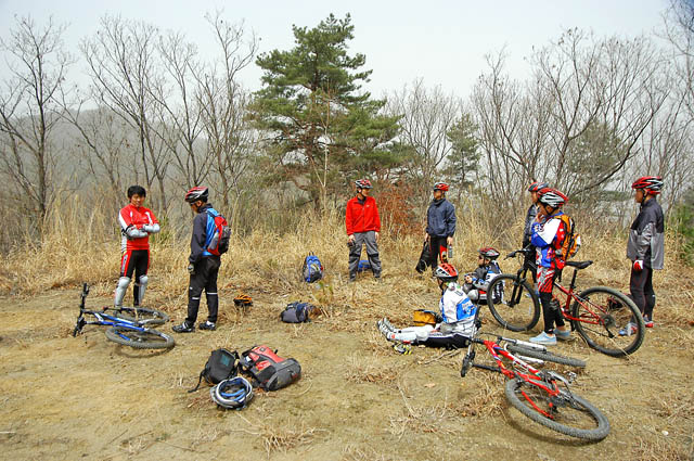 도토리 딴힐 초반부부터 의기소침해진 지라 같이 동행하며 내내 딴힐에 대해 독려해 보지만 이미 누그러진 라이딩에 대한 의지는 좀처럼 다시 지피기 어렵다. 널조의 특성대로 라이딩 시간보다 휴식시간을 최대한 길게 잡아 도토리 20Km를 거슬러간다. 점심도 천천히 봄날 일광욕도 최대한 느긋하게 가보지만 시간이 좀처럼 가질 않는다. 날씨는 완연한 봄날씨에 따듯한 오후 햇살이 정겹다. 짙은 황사로 인해 가시거리가 짧았지만 별로 문제되진 않는다.