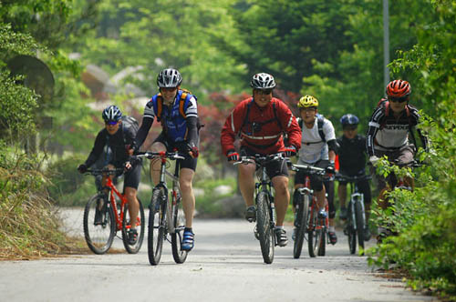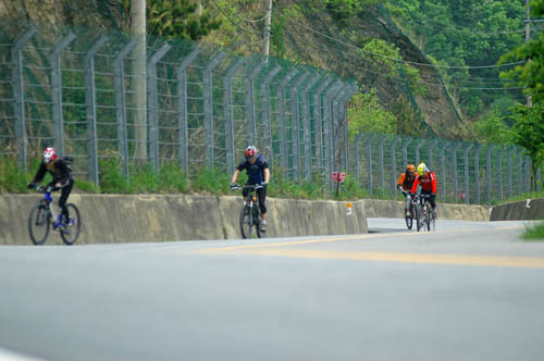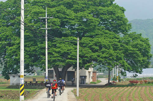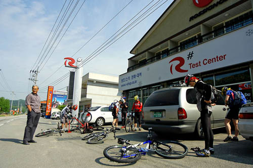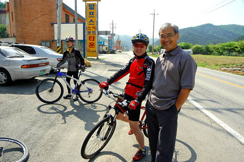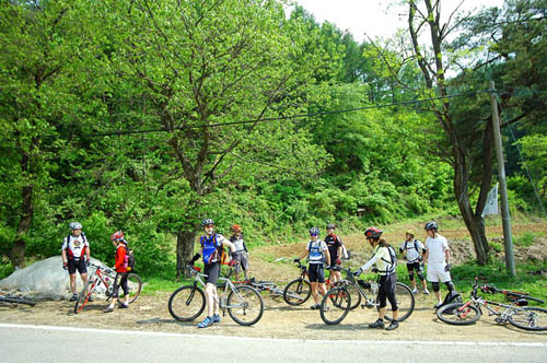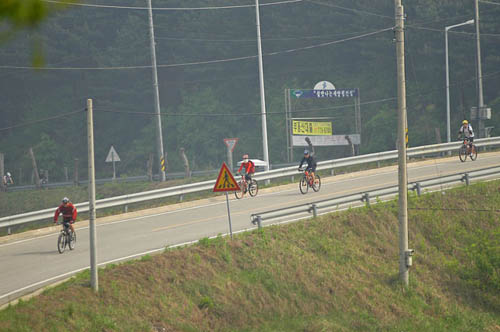 이박사님, 나, 정이석님.. 4시부터 로드 복귀에 나선다. 낮동안 이리저리 농땡이 피우면서 비축해 놓은 힘을 로드에 쏫아 붇고 간다. 목표시간은 7시에 강마을 다람쥐에 도착하는 것.. 1주차 복귀때 보다 다소 강도를 늦춰 느긋하게 가기로 한다. 타이어에 공기압을 최대한 빵빵하게 하고 알샵에 작별인사 하고 출발한 시각이 4시 10여분이다.