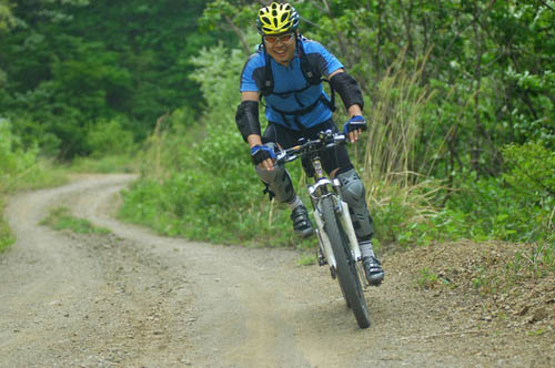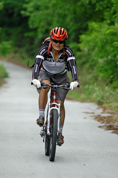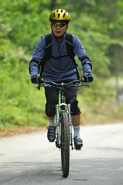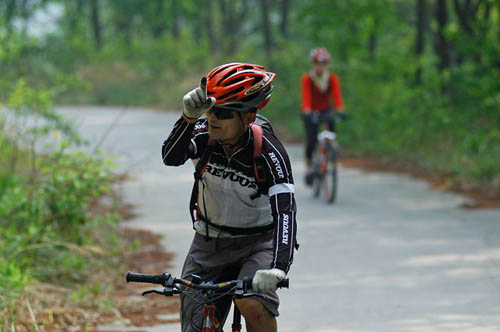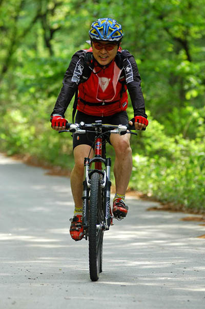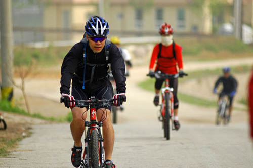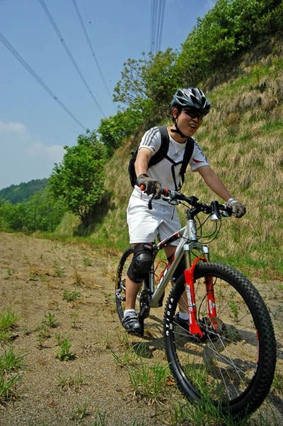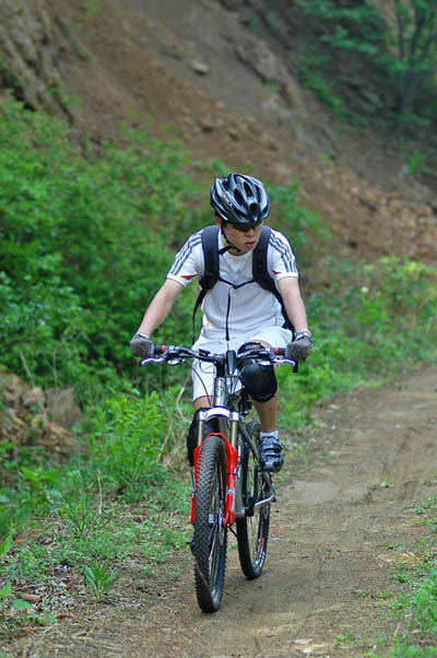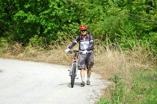 간밤에 뒷쪽 프리휠쪽에 구리스를 가득채운 관계로 좀처럼 스프라켓이 걸려주지 않아 결국 밭배고개를 끌바하고야 마는 이박사님.. 오늘 하루종일 이 문제로 애를 먹고야 만다. 끌바하면서 뛰어오른지라 숨은 가빠 보이지만 얼굴에 여유로운 미소가 가득이다.