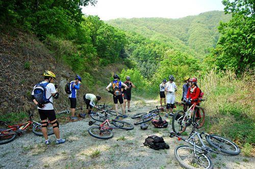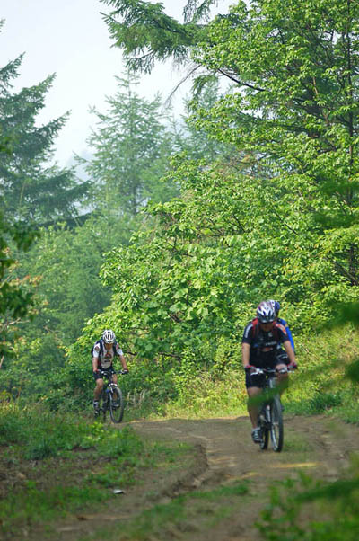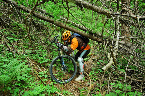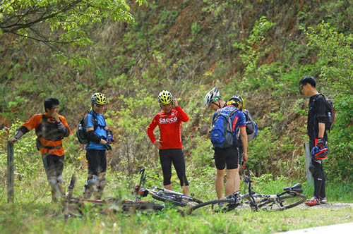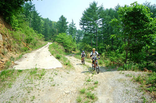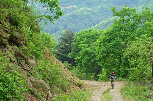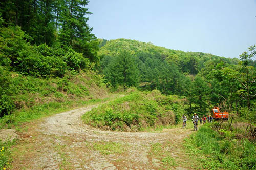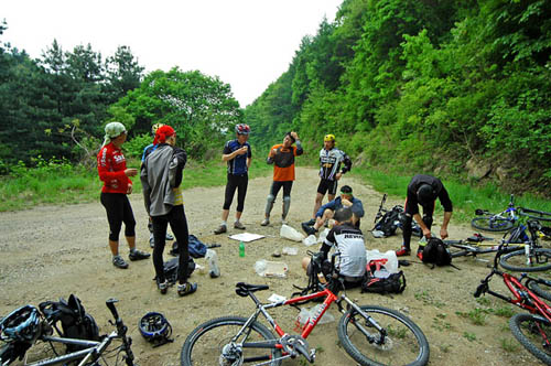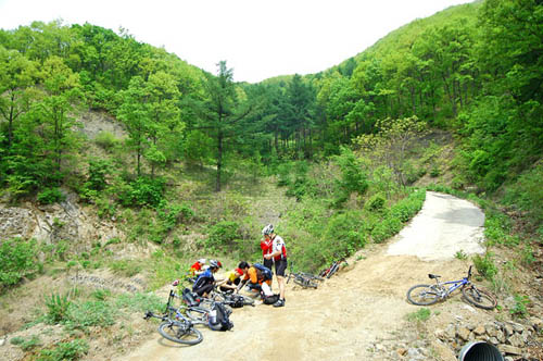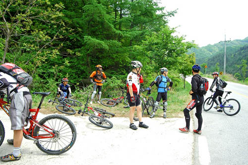 수청마을 삼거리에 다다른다. 여기서 김소장님과 예전에 가보지 못했던 싱글길을 개척하러 가기로 한다. 김수환도 참가 .. 노매드 두대가 간다. 프리의 피가 끓기 시작한 모양이다. 난 XC지만 긴 임도를 달려와 왠지 싱글을 곁들이면 참신할 듯 하여 유혹을 떨치지 못하고 김소장님을 따른다. 나머지 분들은 임도로 복귀하고.. 묻지마의 모든 상황은 몇미터 가지 않아 이미 결정이 난다. 어.. 흑..