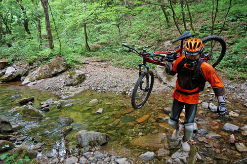 이렇게도 건너본다. 김수환님 노매드가 절대 가벼운 것이 아니다. 풀페이스에 풀보호대에.. 노매드를 지고 건너려니 아주 죽을 맛일 것이다.^^ 다행히 난 XC되겠다..