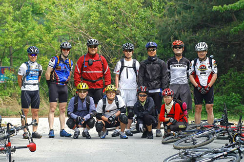 새벽에 잔차를 끌고 인덕원에서 출발 둔촌동에서 김소장님일행과 만난다. 미리 와계신 이건찬선생님의 미소가 해맑다.. 나처럼 잔차끌고 신림동쪽에서 출발하셨으리라..