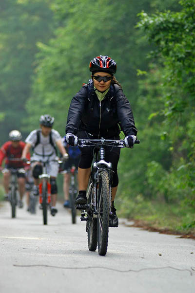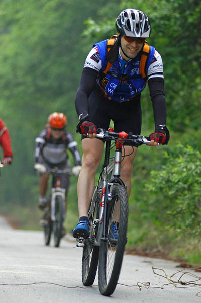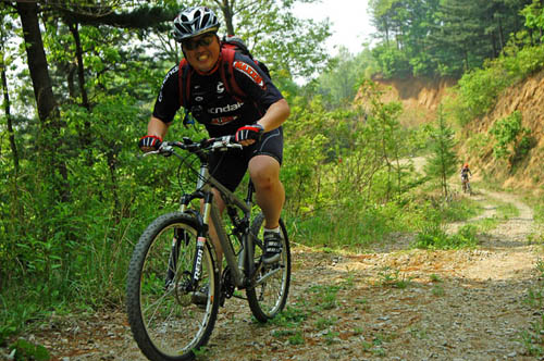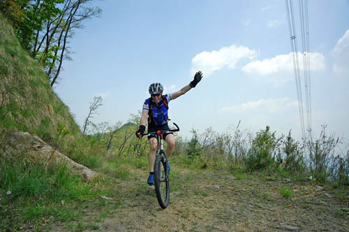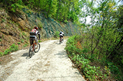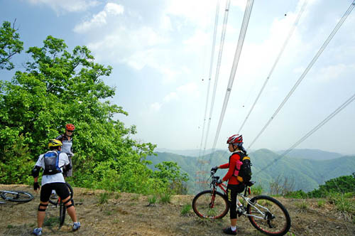 클릿신발 처음신고 송전탑 임도를 따라 여유있게 오르는 이수형님.. 오늘 클릿신발로 이만저만 고생길이 아니다. 업힐에 딴힐에 클릿이 속썩이는 구간을 가리지 않는다..