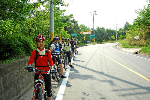 비솔고개 로드로 나와 딴힐태세를 모두 취하고 다시 밭배고개를 쾌속으로 출발.. 그동안 송전탑코스의 묵은 고통을 털어버린다.
