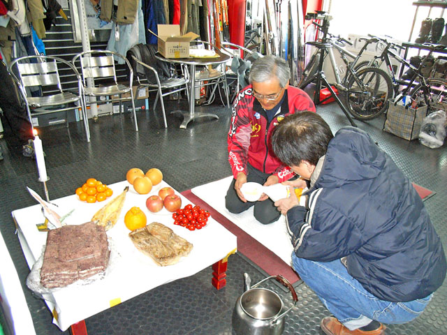 이교장님이 선두로 막걸리 한잔씩 따르며 올한해 알샵라이딩의 무사안전을 기원하는 멘트를 날린다. 모두가 한결같이 안전라이딩을 기원해 주셨다.
