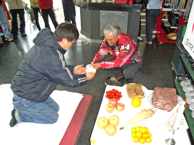 속속 알샵 시자식 멤버분들이 도착하고.. 간단히 고사상이 차려진다. 3기반장이 협찬한 시루떡과 돼지머리 그림이 올려지고..^^