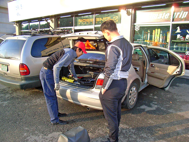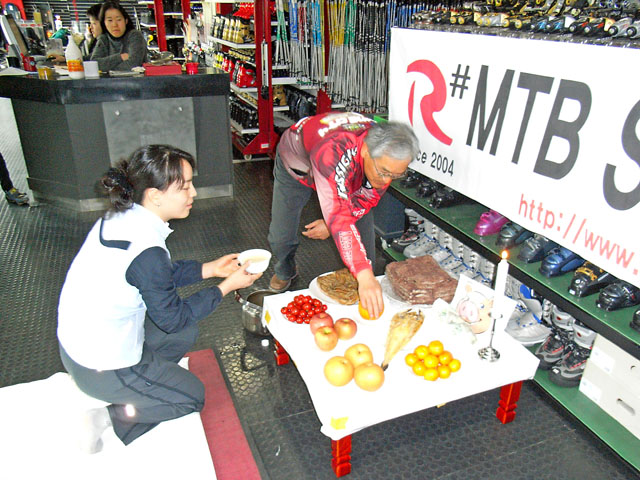 그중에서 이건찬님은 마련하신 물품이 넘 많아 본인의 잔차를 못가져가는 기염을 토하시기도 하신다..^^ 뭐.. 포크에 이것저것 잔뜩 장만하셨다..^^