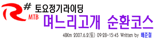 [후기] R# MTB 토요정기라이딩 (며느리고개순환) 2007년 06월 04일 빨간색 제목링크를 클릭하시면 새창이 열립니다. R# MTB 토요정기라이딩 (며느리고개순환) 즐감하십시오..^^