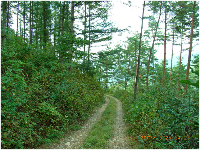 노추산을 가운데 두고 주위를 크게 한바퀴 도는 코스다. 삽당령과 닭목령, 구절리로 통하는 삼거리에 도착하여 구절리쪽으로 잠시가다보면 노추산임도로 진행할 수 있는 다리가 나온다. 다리입구에 차를 주차하고 노추산 임도를 오른다. 이정표에는 얼추 11키로로 표시되어 있다. 물론 이것이 전부가 아니다. 계속 이어지는 오르락 내리락 작은 임도를 따라서 계속 진행해야 한다. 노추산 임도의 분위기는 여느 강원도 울창한 수림지대 그 자체이다. 노면도 훌륭하고..
