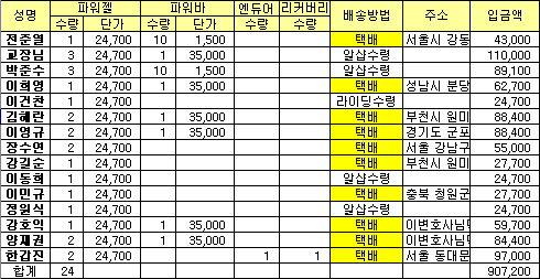 파워젤 1박스 신청합니다.(24,700원 오늘 입금)