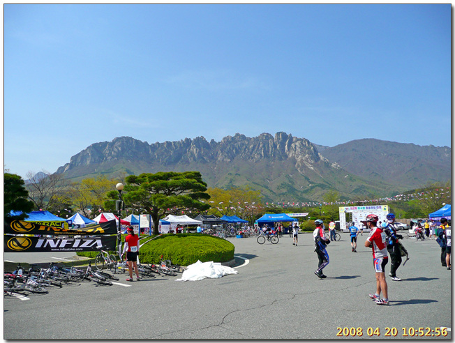 소파에서 TV보다 잠들었다. 깨어보니 아침이다. 창문을 열어놓고 자 온몸이 오들거린다. 새벽 5시반경에 일어나 행사장에 가서 배번과 칩을 받아 온다. 행사장에서 멀리 피니쉬라인인 미시령정상이 빤히 보인다. 만감이 교차.. 대회에 나갈껄 그랬나보다..ㅠㅠ