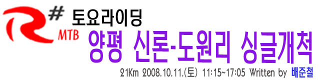 [후기] R# MTB 토요개척라이딩 양평 신론리-도원리 싱글 2008년 10월 14일 빨간색 제목링크를 클릭하시면 새창이 열립니다. R# MTB 토요개척라이딩 양평 신론리-도원리 싱글 즐감하십시오..^^