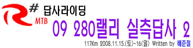 [후기] R# MTB 280랠리 실측답사라이딩 2 2008년 11월 21일 빨간색 제목링크를 클릭하시면 새창이 열립니다. R# MTB 280랠리 실측답사라이딩 2 즐감하십시오..^^