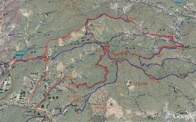 간단한 코스맵입니다.(붉은색 라인이 라이딩한 코스입니다.)