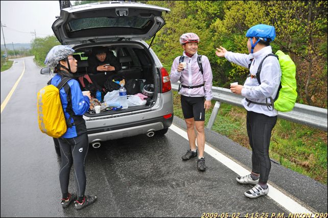 토요일 100킬로(실제로는 91?)라이딩 후반부에 밭배고개를 오르는데 배사부님이 카메라를 조준하고 계시더군요. 생각도 못했는데 정말로 반갑고 고마왔습니다. 거기서 따끈한 커피와 간식으로 배를 채울 수 있어서 라이딩을 마무리 할 수 있었던 것 같아요. 고맙습니다.