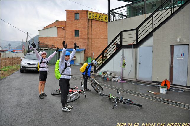 전날 며느리 라이딩에서 워밍업 하셔서 우중 라이딩도 가뿐하셨을 김수환 선생님이~
