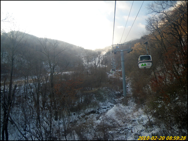 아래로 펼쳐진 스키장 정경이 아득해질 즈음 곤돌라하차장에 도착한다.