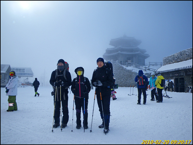 한 25분여가 걸린것 같다.. 멀리 설천봉을 상징하는 누각을 배경으로 단체사진..