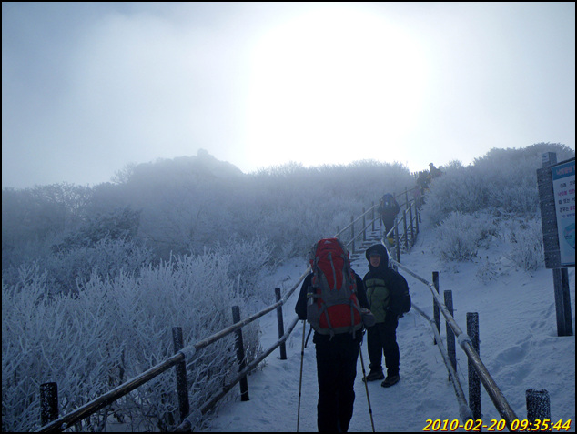 향적봉으로 오르는 계단길에는 사람들이 설경을 찍기위해 가득이다.