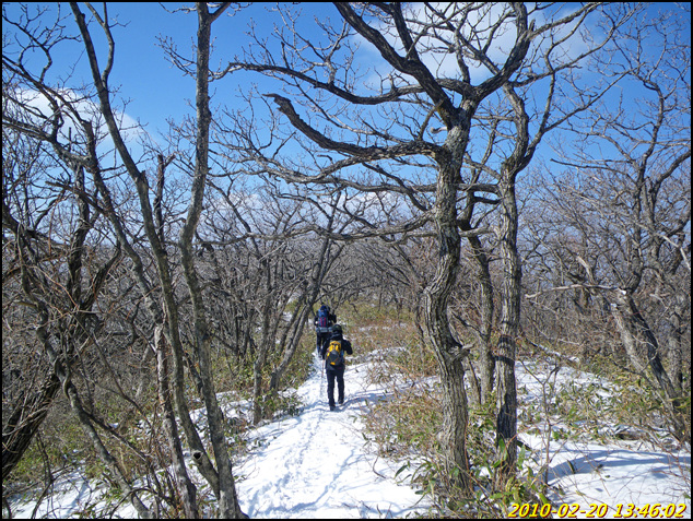 기분좋게 표고차도 거의 없는 능선을 따라가면..