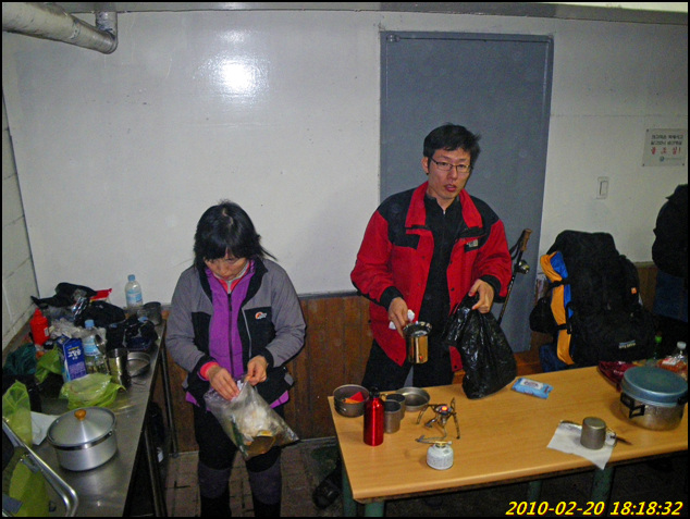 밤의 삿갓재대피소 밖은 바람이 지나가는 자리인지라 그 추위가 매섭다.