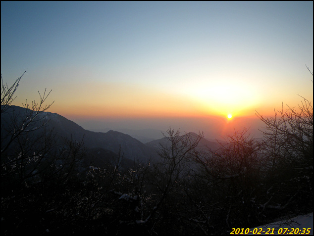 삿갓봉 정상을 얼마앞두고 해는 떠버리고..