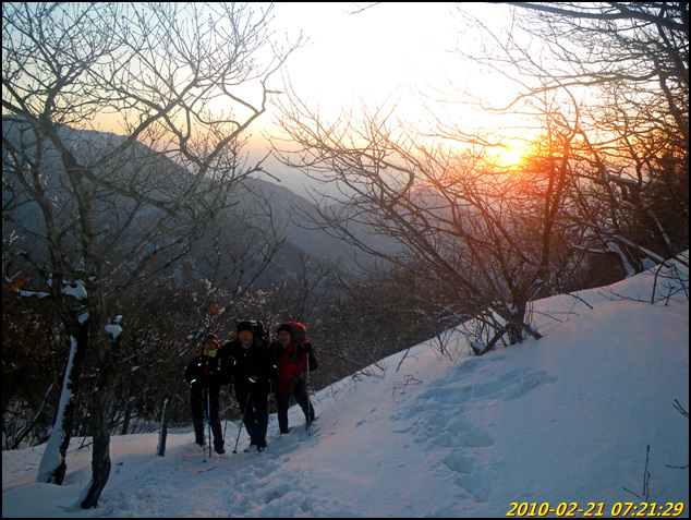해가 어슴프레 뜨려고 할때 삿갓봉으로 출발할 수 있었다.
