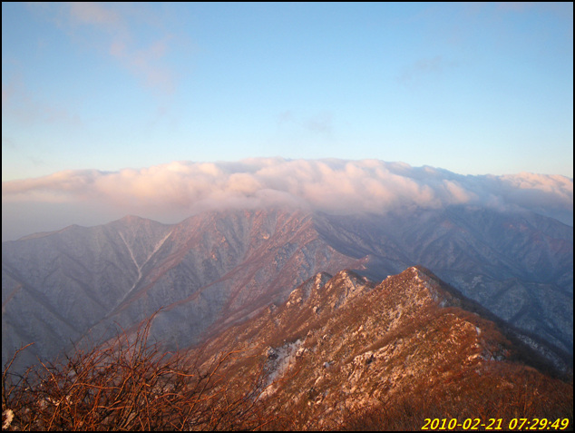 멀리 남덕유산정산을 넘어오는 운무가 장관이다.