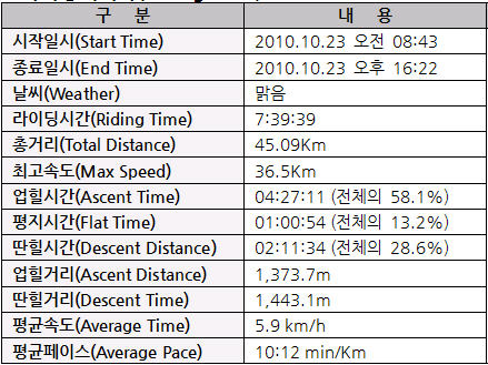 – 라이딩데이타