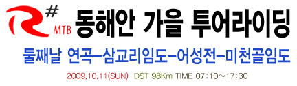 [후기] R# MTB 가을 동해안 투어(둘째날, 삼교리-어성전-미천골) 2009년 10월 16일 빨간색 제목링크를 클릭하시면 새창이 열립니다. R# MTB 가을 동해안 투어라이딩(둘째날, 삼교리-어성전-미천골) 즐감하십시오..^^ * admin님에 의해서 게시물 복사되었습니다 (2009-11-04 11:04)