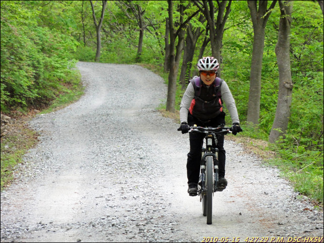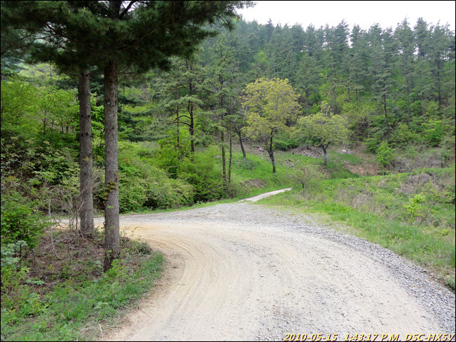 내려가는 파쇄석길은 자칫 타이어가 박혀서 커브나 직선로에서 위험할 수 있으므로