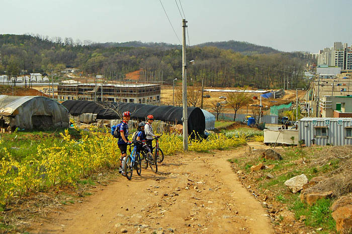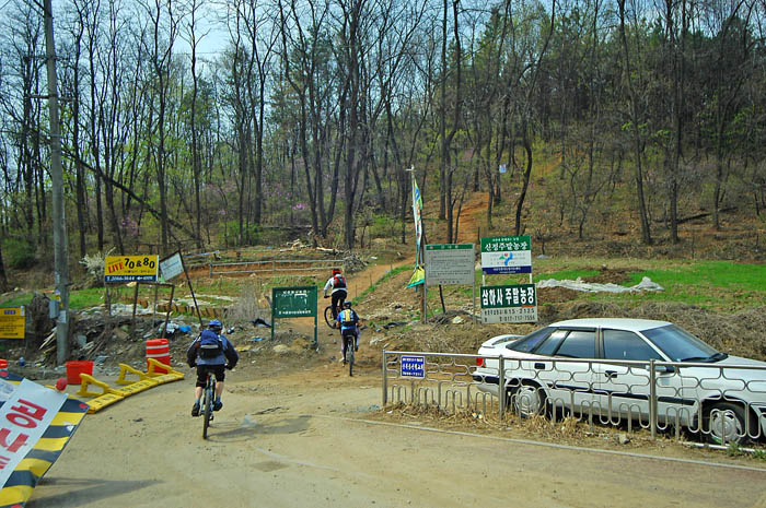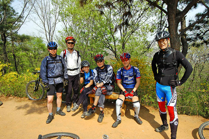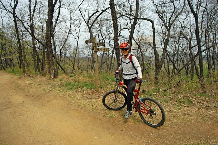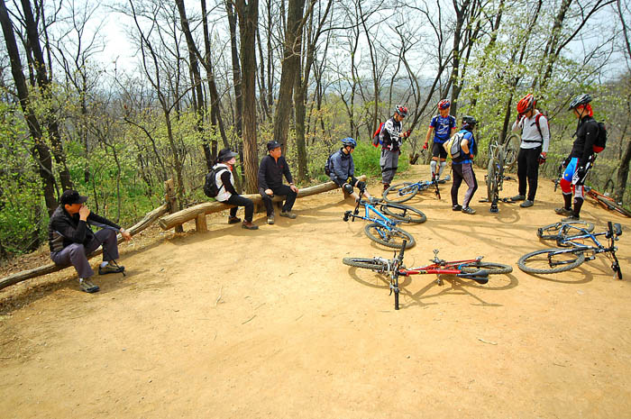 가도가도 계속 나오는 가파른 언덕에 다들 진이 빠지기 시작한다. 밥먹은게 쑥쑥 소화되고 있다.^^ 특히 잔차를 새로 장만하신 배상범님과 같이오신 김택수님은 체격조건도 비슷하고 체력조건도 비슷하다. 하지만 적극적인 상범님의 라이딩에 동료분이신 택수님도 혀를 내두른다. 겨우내내 벼르던 라이딩에 대한 갈망을 싸그리 지워버리려는 듯.. 상범님의 짐승라이딩은 대단했다.. 못오르는 언덕이 손에 꼽을 정도로..^^
