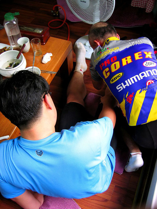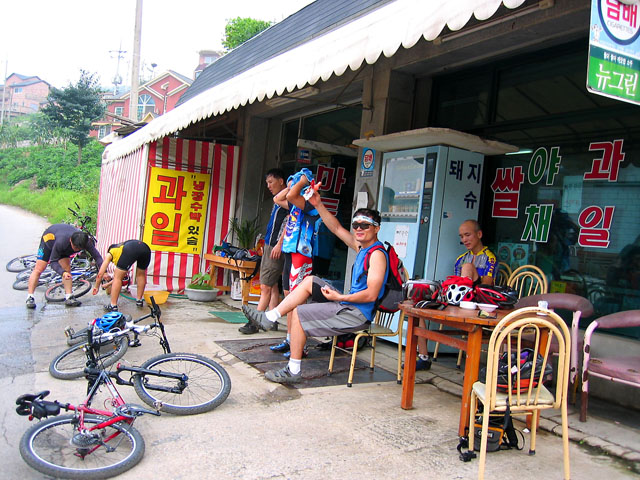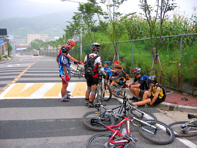 힘남는 사람은 더타고 바쁘거나 잔차 고장났거나(성주현님이 당첨이다. 식당계단을 타고 내려오다 일부러 휠을 휘게 만들었다..농담임다.^^) 지쳤거나 또는 잔차가 너무 무거운사람(김소장님이다. 근데 우진형님도 만만치 않다.) 한사람은 일단 철수한다.