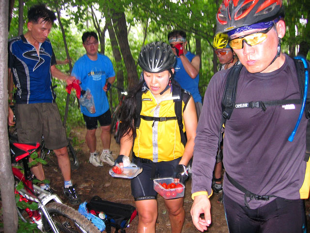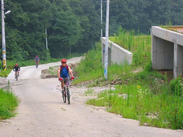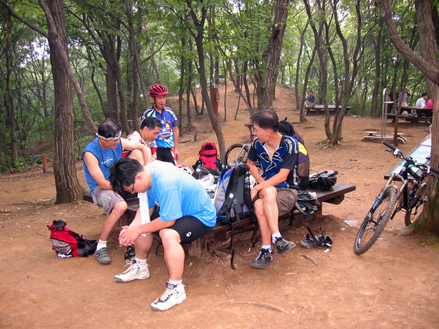 아 나의 책임감이여.. 그래도 사람들을 위안한답시고 여기서는 거의 얕은 언덕만 있다는둥.. 조금만 더가면 된다는 등의 예전 낡은 기억을 되집어 변명을 늘어놓고 있다. 그래도 위안이 되었는지 일행은 쉬더니 다시 길을 선뜻 나선다. 그런데 가면 갈수록 업힐은 끝나지 않는다. 사람들을 이끌고 가서 인지 몰라도 조그만 업힐만 나와도 왠지 미안스럽다. 다들 체력의 부담을 많이 느끼고 있다.
