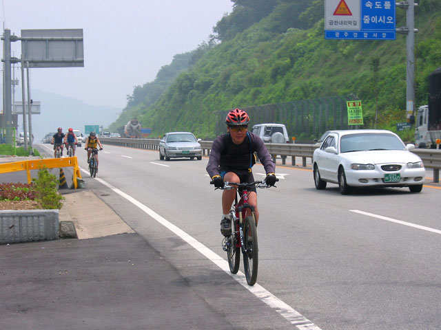 정신이 혼미한 가운데 로드로 내려서서 모두들 점심을 먹기로 한다. 이전에 불곡산라이딩에서 먹었던 아구찜이 생각나 태재고개까지 일단 로드를 타고 가기로 한다. 알샵라이딩시 식사후 항상 빡센 업힐을 많이 했던 아픈추억이 생각나 오늘은 일단 내리막만 놔두고 식사를 하기로 한 것이다. 햇볕이 쨍쟁 내려쬐는 아스팔트 로드를 타고 태재고개까지 다시 올라선다. 싱글에서 한참을 돌아 내려온 길이 로드는 업힐임에도 금방 갈 수 있다. 이것도 즐거운 상대적인 발견중에 하나다.
