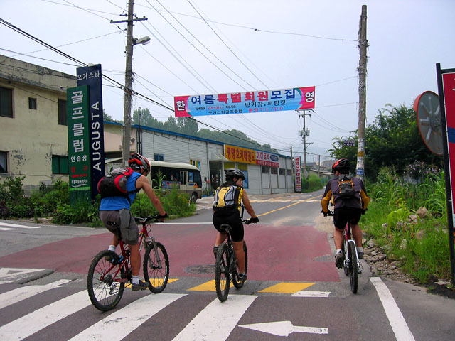 더위에 지치고 모기와 싸우고.. 그렇게 묵묵히 문형산자락을 돌고 있자니 한때의 라이더가 삭막한 바람소리를 내며 지나친다. 빡세게 타는 팀인것 같다. 웃옷을 홀라당 라이더도 있었다. 홍일점이 단월님이 민망해 할 것 같다.. ^^