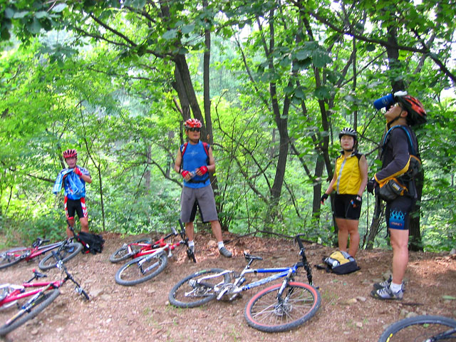새마을고개능선까지 반은 끌고 반은 타고 올라선다. 쉬면서 오늘의 라이딩에 미리 질려버리신 싱글초보분들께서 하소연을 늘어 놓는다. 이런게 싱글인가 하며 한숨을 푹푹 내쉬는데.. 원래 싱글을 이렇다고 싱글고수분들께서 강평을 한다. 임도만 접하다 싱글을 타보니 두려움부터 덜컥 올라와 버렸다. 그래도 우리가 누구인가 무적의 알샵라이더는 중단하는 법이 없다.^^
