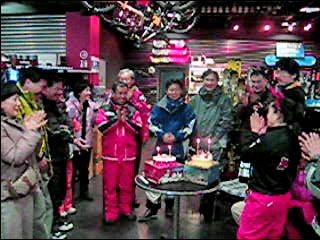 오후들어 3기 라이딩맴버들이 대명 모글코스를 섭렵하고 돌아온다. 혼자 탈 수 밖에 없는 이유는 여기에 있었다.^^ 모두들 모글에 푹빠져 계신지라 잔차타자고 말도 못꺼내 본다.ㅠㅠ.. 그래도 모처럼 만에 모인지라 준비해온 케익 자르고 기념사진도 한번 찍어본다. 겨울에도 알샵맴버들은 이렇게 즐겁다.