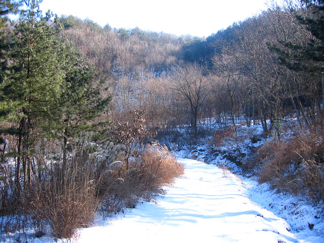 대곡초교방향에서 탄 도토리를 밭배고개방향으로 진행하였다. 도토리 북사면에 해당된다… 후반부까지 꾸준히 이어지는 업힐이 지루하게도 긴 코스다. 날씨 따듯한 날에 오르면 비단길같은 업힐이 꾸준히 이어져 단거리 초급업힐 연습코스로 그만인 곳이다. 하지만 눈이 쌓인 그늘진 도토리코스는 바퀴가 눈에 푸욱빠져서 쩍쩍 붙어나오는 관계로 인내심을 가지고 완만한 업힐도 시속 5~7키로의 속도로 진행할 수 밖에 없었다. 간혹이어지는 다운힐도 스킹의 카빙턴처럼 타이어가 이전에 지나간 차량의 흔적을 벗어나면 눈의 부드러운 부분에 칼처럼 박히어 휙휙 돌아가곤 한다. 고속이라면 아찔할 수도 있었겠으나 워낙 조심스럽게 내려가던 딴힐들이어서 앞바퀴나 뒷바퀴의 슬립이 즐겁기만 하다.